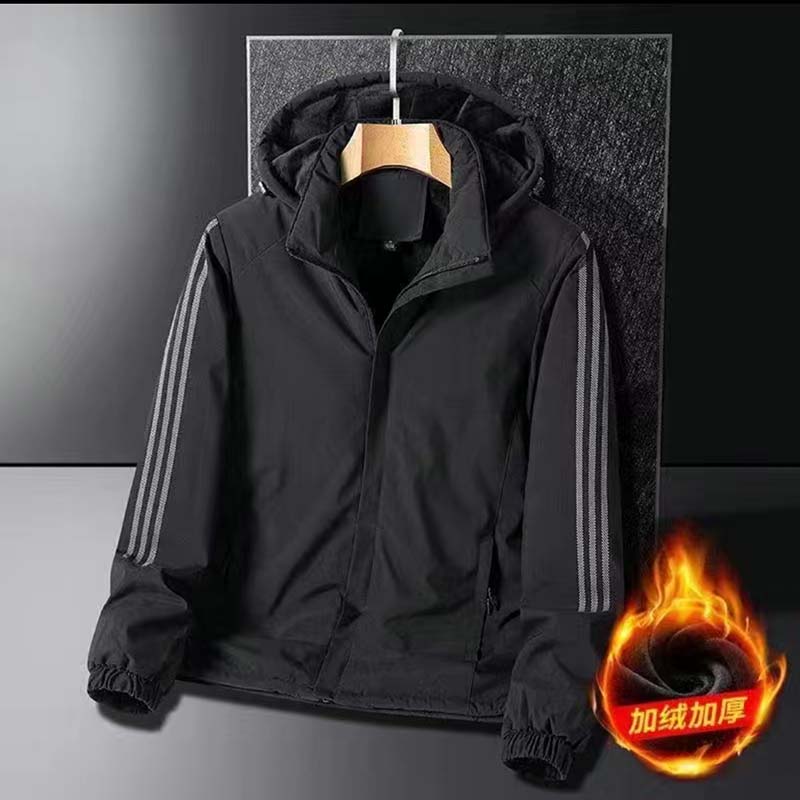 Aýratynlyklary: Bu kurtka sowuk möwsümde ýylylygy we amatlylygy üpjün eder. Ýeňlerindäki üç sany bezegli, ýagtylygy yzyna gaýtarýan zolakly klassiki sport dizaýny siziň görnüşiňize stil we tanalýanlyk goşar. Kurtka amatly kapýuşon bilen enjamlaşdyrylan we galyň matadan tikilendir. Gezelençler, işjeň dynç alyş we gündelik geýmek üçin ajaýyp amatlydyr.