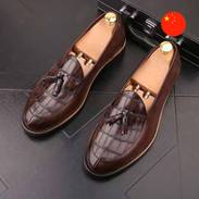 • Aýratynlyklary: Bu aýakgaplar siziň işewür ýa-da dabaraly görnüşiňiziň kemsiz bolmagy üçin döredilendir. Ýylmanak, ýalpyldawuk deri haýwan derisini ýatladýan stilistik timarlama bilen bezelen giň bezeg tokasy bilen utgaşýar. Olar statusy we detallara ünsi bada-bat nygtaýar. Goýy reňki we asylly ýalpyldysy ýyllar geçdigiçe has-da gowulaşýar.