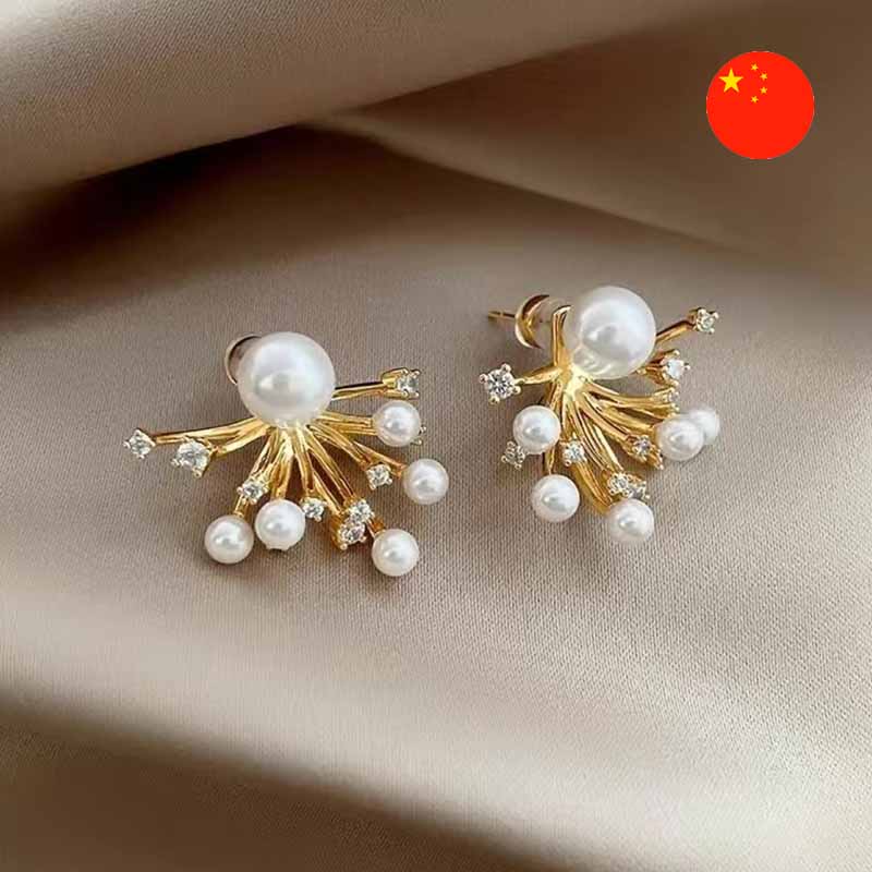 • Aýratynlyklary: Bu gulakhalkalar aşa özboluşly we täsirli bolup, olaryň dizaýny açylýan feýerwerki ýa-da gül şagallagyny ýatladýar, bu bolsa olary göwnejaý we dabaraly edýär. Esasy altyn reňkli ýelpik ýa-da ýaýrap barýan şöhleler görnüşinde ýasalypdyr. Uly merjen gulagyň ýumşak bölegine berkidilipdir, onuň daşyna bolsa kiçijik merjenler we ýalpyldawuk kristallar ýaýradylyp, feýerwerk (ot-ýalyn) täsirini döredýär.