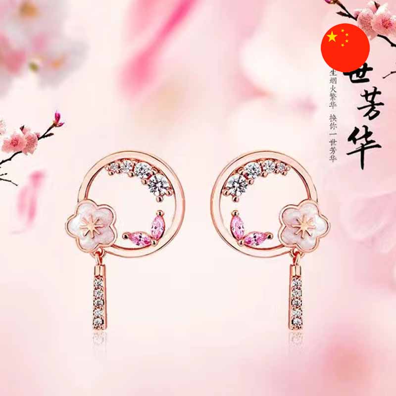 • Aýratynlyklary: Bu Owadan gulakhalkalar ýazyň täsiriniň we näzikliginiň hakyky keşbidir. Näzik detallary bolan gülgüne-altyn reňkli ýarym halka görnüşindäki dizaýny romantik görnüşi ajaýyp doldurar. Kompozisiýanyň merkezinde durnuklylygyň we gözelligiň nyşany bolan ak emal bilen ýasalan erik gülüniň (meýhua) şekili ýerleşýär. Onuň aşagynda bolsa gülgüne kristallar bilen bezelen kiçijik kebelek bar.
