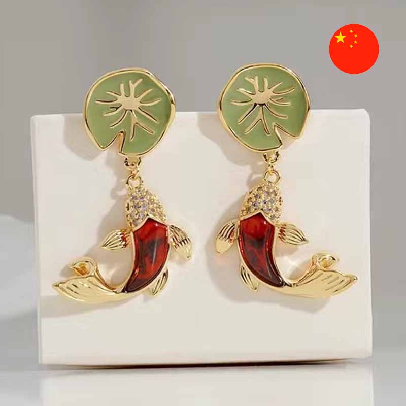 • Aýratynlyklary: Bu açyk gulakhalkalar siziň görnüşiňize üstünlik we şatlyk goşjak kiçijik tumardyr. Dizaýny baýlygy we erjelligi aňladýan Koý karpyň, arassalygy we asyllygy aňladýan lotus ýapragynyň bardygy sebäpli Hytaýyň suratly howzyndan ylham alnandyr. Olar dinamik we ünsi çekiji. Açyk emalyň we altyn reňkli metalyň utgaşmasy olary ýazky ýa-da tomusky egin-eşik üçin iň amatly nyşan edýär.
