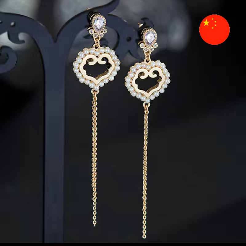 • Aýratynlyklary: Owadan uzyn gulakhalkalar merjeniň klassyky zäwkliligini we romantik ýürek keşbini utgaşdyrýar. Esasy kiçijik emeli merjenler bilen bezelen ažur ýürek görnüşinde ýasalypdyr. Olar duşuşyk, toý, okuwy tamamlama dabarasy ýa-da islendik dabaraly çäre üçin örän amatly bolar.