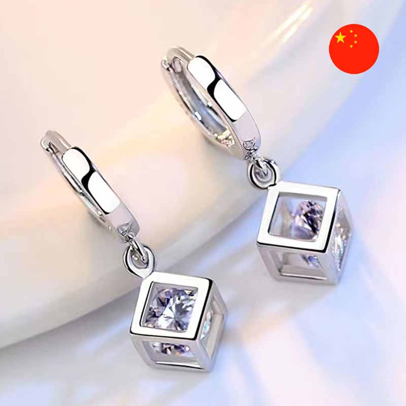 • Aýratynlyklary: Bu owadan (stilniý) gulakhalkalar kümüş reňkde ýasalypdyr we içersinde ýalpyldawuk kristaly bolan kiçijik kub görnüşli sallançak bilen doldurylýar. Olar gündelik dakynmak ýa-da aýratyn pursatlar üçin iň laýyk gelýär. Amatly berkidijisi ygtybarly ýerinde durmagy üpjün edýär.Sowgat üçin ýa-da her gün üçin näzik şaý-sep hökmünde iň laýykdyr.