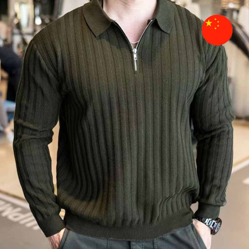 • Aýratynlyklary: Bu — zamokly we elegant erkekler üçin örülen switerdir. Ol klassiki polo ýakany we funksional zamogy özünde utgaşdyrýar. Bu bolsa, öňüni açmagy sazlamaga mümkinçilik berip, stili has-da artdyrýar. Iş stilinde balak we palto bilen hem, jinsy we balak bilen hem kämil görnüş döredýär.