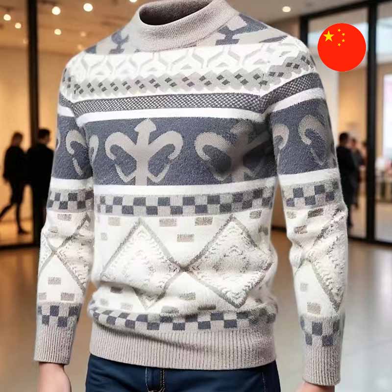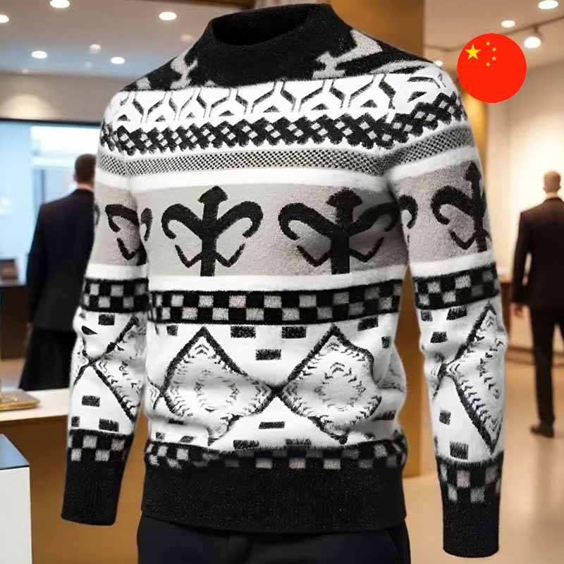 • Aýratynlyklary: Bu switer — ýylylygy we açyk stili utgaşdyrýan sowuk wagty üçin iň gowy saýlaw. Kontrastly žakkard nagyş. Nagyşda romb elementleri we adaty motiwleri ýada salýan stilize edilen nyşanlar bar. Jinsi balak ýa-da klassiki balak bilen ajaýyp görünýär.