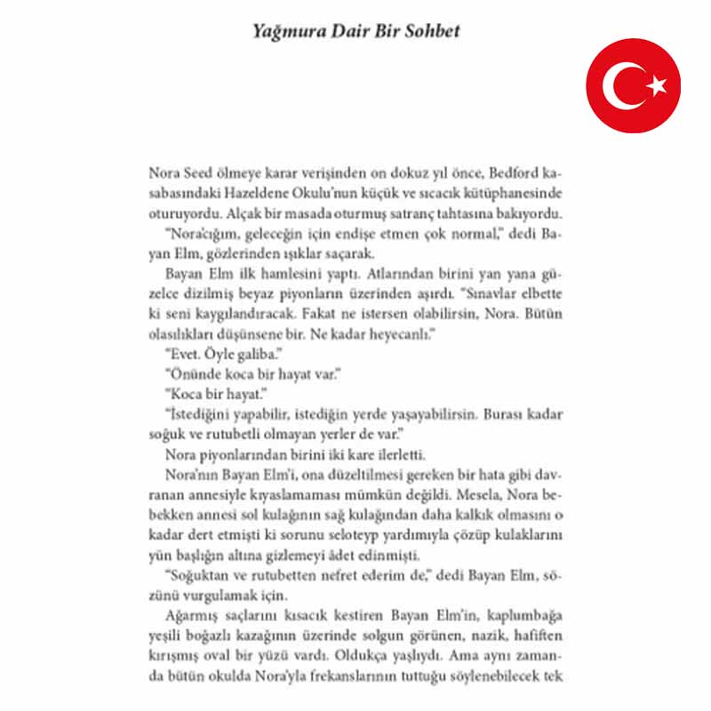 • Aýratynlyklary: Eger durmuş bilen ölüm arasynda kitaphananyň bardygyny hasap etsek näme? Bu kitaphanada bolsa tekjelerde kitaplar duran, olaryň her biri — başga bir durmuşy synap görmek üçin mümkinçilik, başga saýlaw eden bolsaňyz ýaşap biljek durmuşyňyz. Ýyldyzly asman we syrly öý bilen bezelen daşlygyň aňyrsynda bir zenanyň saýlap almadyk ähli durmuşlaryny ýaşap görmäge mümkinçilik alandygy baradaky taryh gizlenýär. Oňa hakykatdanam özüne laýyk gelýänini tapmaga ýeterlik batyrlygy barmyka?