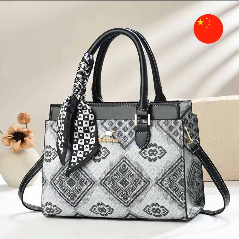 Aýratynlyklary: Bu owadan sumka gündelik ýa-da işewür görnüşi ajaýyp doldurar. Model gurçukly (teksturaly), eliňe ýakymly matadan ýasalan we oňa aýratyn görk berýän özboluşly (original) geometrik nagyş bilen bezelendir. Esbap (Aksessuar) nepis (elegant) ýaglyk (plýatka) bilen bezelendir.