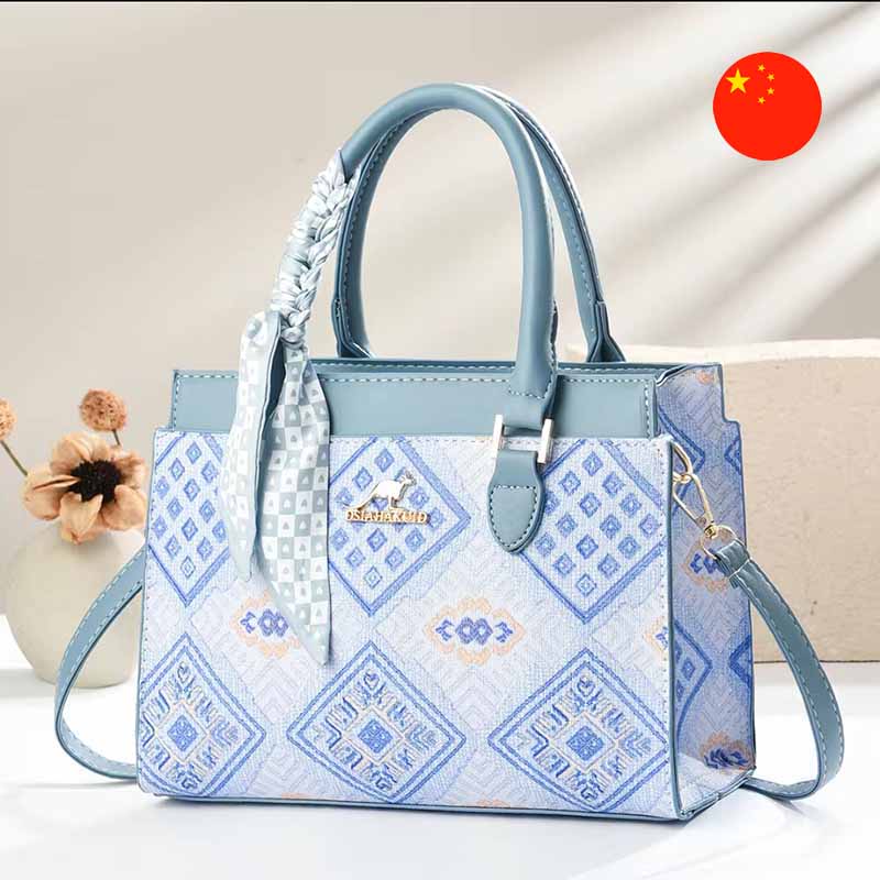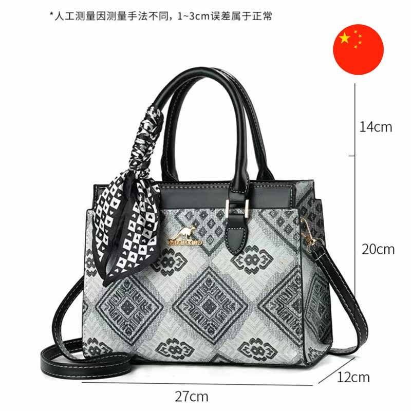 • Aýratynlyklary: Bu owadan sumka gündelik ýa-da işewür görnüşi ajaýyp doldurar. Model gurçukly (teksturaly), eliňe ýakymly matadan ýasalan we oňa aýratyn görk berýän özboluşly (original) geometrik nagyş bilen bezelendir. Esbap (Aksessuar) nepis (elegant) ýaglyk (plýatka) bilen bezelendir.