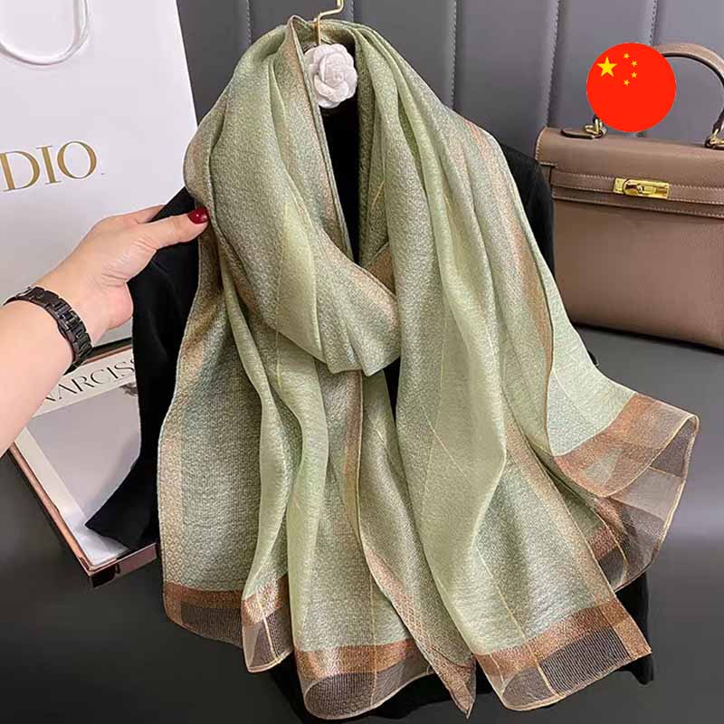 Aýratynlyklary: Gezelençler üçin ýa-da gündelik geýim janlandyrmak üçin elegan goşmaça aksesuar. Bu şarf siziň iň gowy saýlaw bolar. Altyn reňkli lýureks (metal sapak) goşulan ýeňil mata gözleri özüne çekýän ýalpyldawuk täsiri döredýär. Ol hem agşamky çäreler, hem-de işewür ýa-da gündelik stil üçin amatly saýlaw.