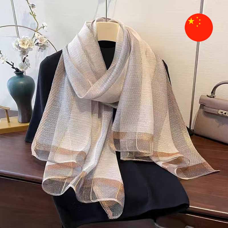 Aýratynlyklary: Gezelençler üçin ýa-da gündelik geýimi janlandyrmak üçin elegant aksesuar. Bu şarf siziň iň gowy saýlawyňyz bolar! Altyn reňkli lýureks goşulan ýeňil mata gözleri özüne çekýän ýalpyldawuk täsiri döredýär. Ol hem agşamky çäreler, hem-de işewür ýa-da gündelik stil üçin gowy saýlaw.