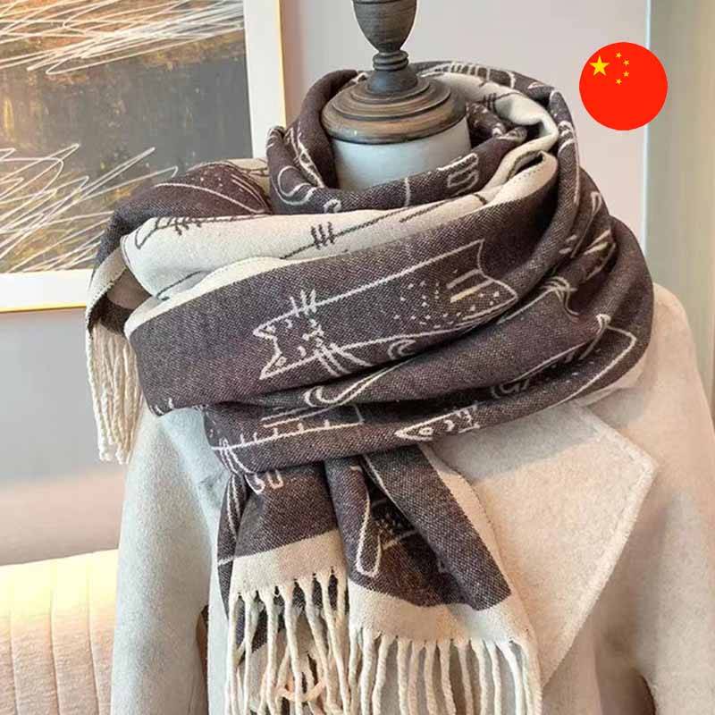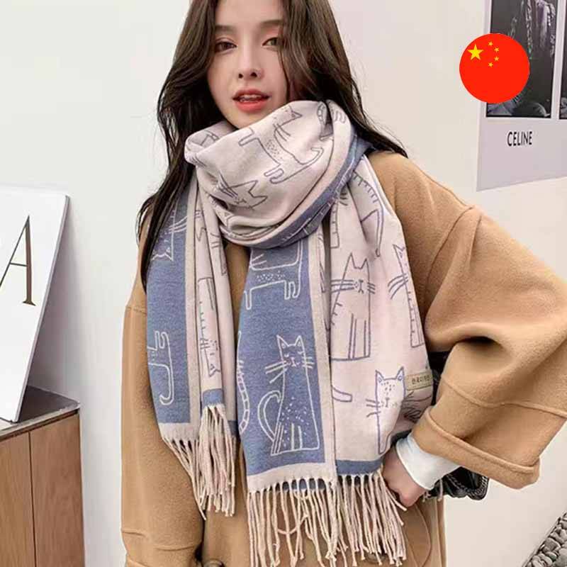 Aýratynlyklary: Bu şarf ýylylygy, ýumşaklygy we ünsi özüne çekjek original nagyşy (printi) utgaşdyrýar. Ol stillenen pişik şekilleri ýa-da heýkeljikleri bilen uly, kontrastly suratly. Haýwanlary söýýänler üçin iň gowy goşmaça (aksesuar)!