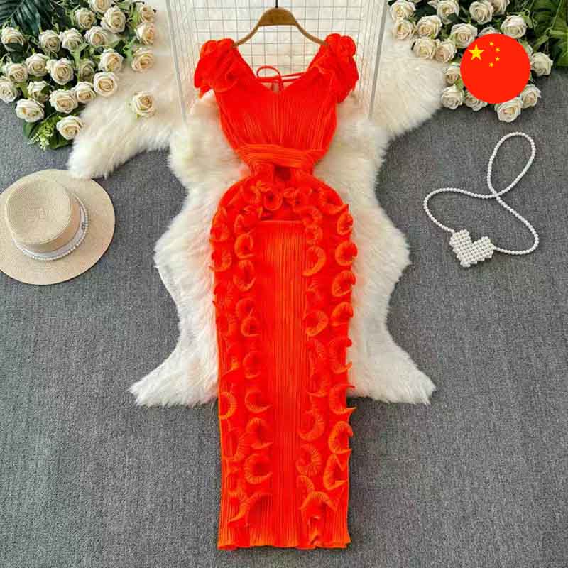 Aýratynlyklary: Bu özüne çekiji we duýgur köýnek bilen ünsleri özüňize çekiň! Ýokarky bölegindäki galyň fırfırlar we tutuş uzynlygy boýunça ýerleşdirilen ýapraklar görnüşindäki dik göwrümli applikasiýalar deňsiz-taýsyz teksturany we hereketi döredýär. Dynç alyş, fotosessiýa ýa-da tomusky dabara üçin iň laýyk saýlaw. Plýaž dabara, kurortda dynç almak, tebigatda toý dabarasy üçin ajaýyp bolar.