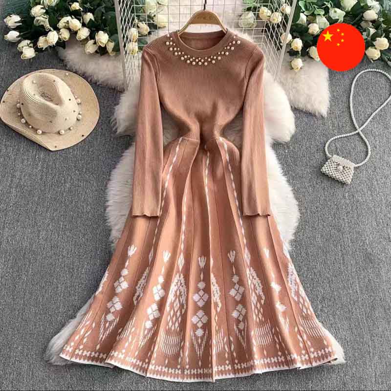 • Aýratynlyklary: Ýylylygy we grafiki kaşaňlygy utgaşdyrýan owadan trikotaž midi-köýnek. Klassiki gara fon kontrastly ak nagyşy ajaýyp nygtaýar. Güýzki we gyşky çäreler, ofis üçin 'casual', medeni gezelençler üçin ajaýyp.