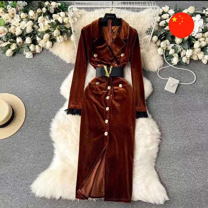 • Aýratynlyklary: Bilbagly (guşakly) we metal düwmelikli owadan mahmal köýnek owadanlygyň we stiliň beýanydyr. Köýnek ýumşak mahmaldan ýasalan bolup, keşbe baýlyk we owadanlyk berýär. Metal bilbag keşbi döredip, bili nygtaýar. Uzyn ýeňler we beýik ýaka keşbe salyhatlylyk we eleganlylyk goşýar. Köýnegiň öň tarapyndaky metal düwmeler gyzykly nyşan (aktsent) döredýär we ony stilli hem-de häzirki zaman edýär. Bu köýnek agşamky çäreler, işewür duşuşyklar ýa-da kemsiz görünmegi talap edýän aýratyn wakalar üçin örän laýyk geler.