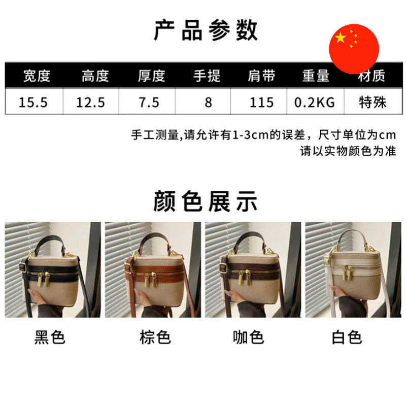 • aýratynlyklary: Kežual stildeki elegan sumka (kosmetika gutujygy). Utgaşdyrylan materiallardan ýasalan, gaty silindr şekilli, moda mini-sumka. Sumka iki sany altynsow zamok syrma we amatly giň remen bilen enjamlaşdyrylandyr.