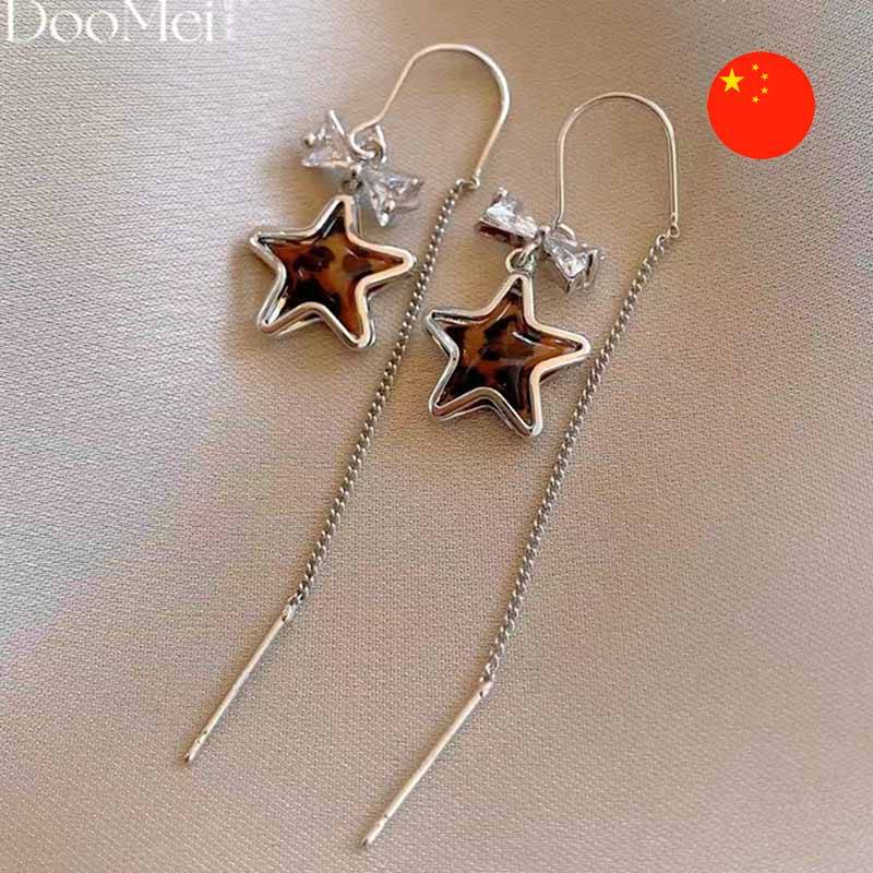 • aýratynlyklary: Owadan nagyşly, lowurdaýan ýyldyz görnüşli moda laýyk gulakhalkalar. Ýokarky bölegi daşly (kristall) owadan bantik bilen bezelendir. Uzyn we inçe zynjyr boýny uzaldýan täsirli "şelpeli" (kistewaý) dizaýny döredýär. Stilistik aýratynlyk üçin ýeňil we amatly wariant.