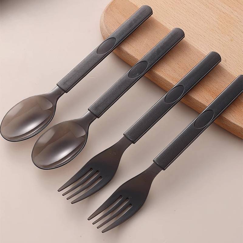 Aýratynlykda gaplanan bir gezeklik plastik gap-gaç: Nahar we kofe üçin Amerikan stilindäki uzyn saply, galyňlaşdyrylan süýjülik çemçesi we wilka