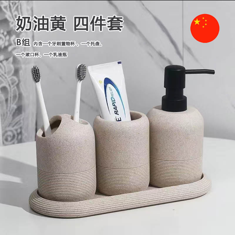 • Aýratynlyklary: Hammam otagy üçin 4 esbapdan ybarat stilli toplum: çotgalar üçin bulgurjyklar, pasta üçin konteýner we sabyn dozatory.
