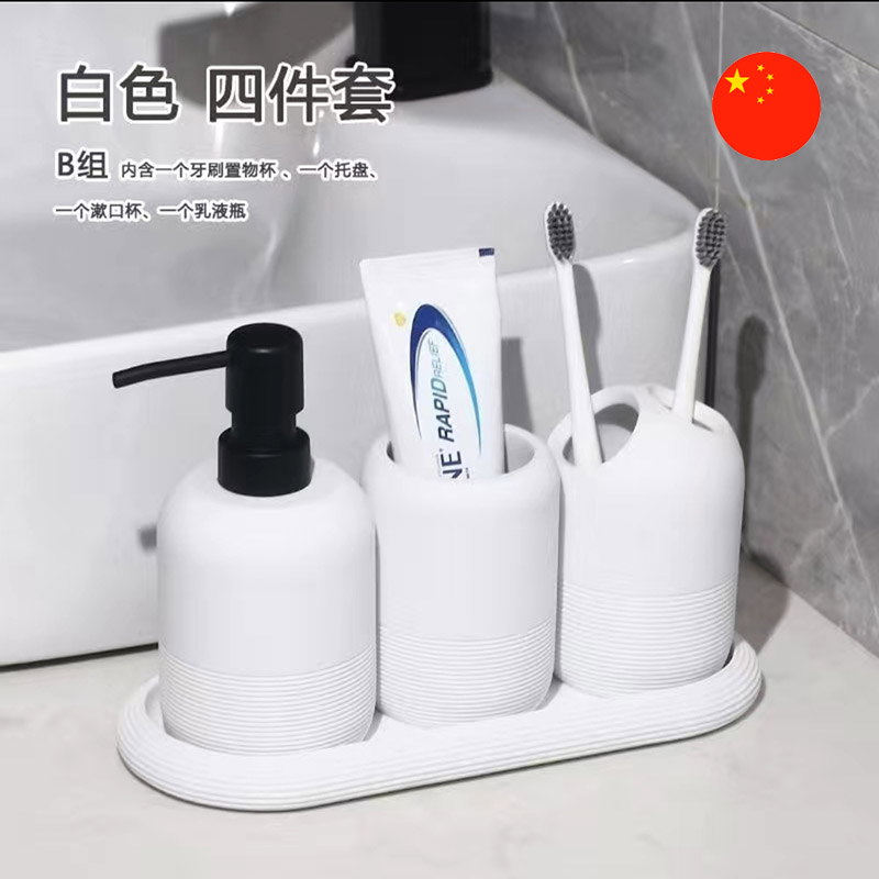 • Aýratynlyklary: Hammam otagy üçin 4 esbapdan ybarat stilli toplum: çotgalar üçin bulgurjyklar, pasta üçin konteýner we sabyn dozatory.