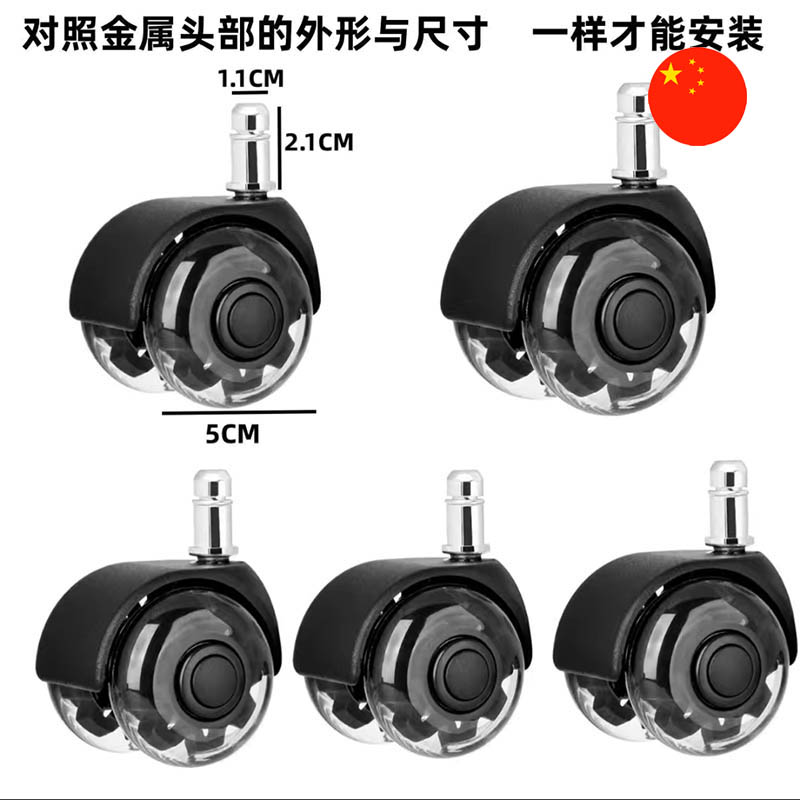 • Aýratynlyklary: Ätiýaçlyk tekerçekler toplumy ofis, kompýuter we oýun (geýmer) oturgyçlarynyň standart roliklerini çalşyrmak üçin niýetlenendir. Önümler dury (prozraçnyý) dizaýnda ýerine ýetirilen bolup, bu mebele döwrebap görnüş berýär. Konstruksiýasy poluň ýüzünde ýumşak we sesiz süýşmegi üpjün edýär. Satyn almazdan ozal, tekerçekleriň laýyk gelmegini üpjün etmek üçin metal ştogyň ölçeglerini oturgyjyňyzyň häzirki berkidiş ýerleri bilen deňeşdirmegiňiz zerurdyr.