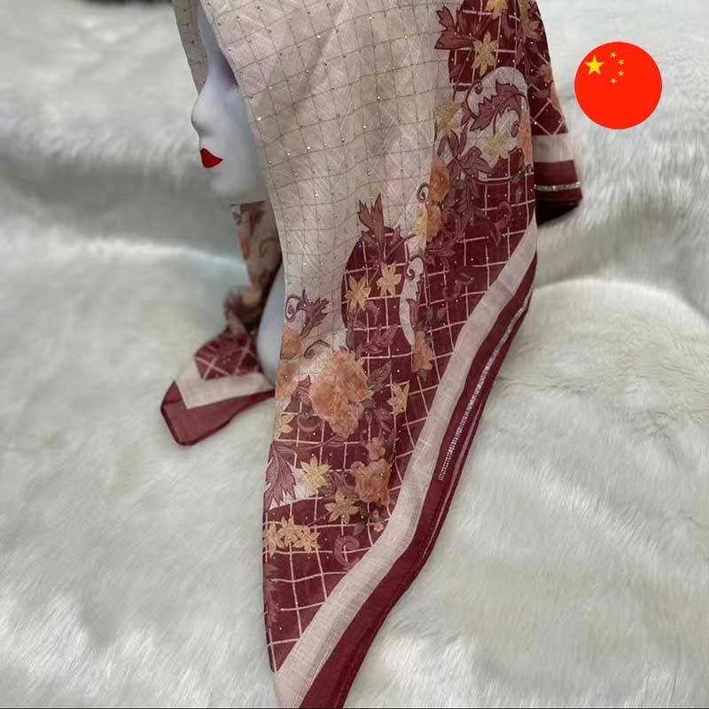 Aýratynlyklary: Inçelik bilen işlenen gül nagşy bolan nepis şarfyny hödürleýäris. Ýeňil matanyň näzik ýalpyldysy bu aksessuara aýratyn gelşik berýär. Uniwersal dizaýny ony hem gündelik, hem dabaraly keşpler üçin laýyk edýär. Ölçegi bolsa şarfy egin ýapynjasy, baş daňysy ýa-da lybaseňyzyň döwrebap bölegi hökmünde ulanmaga mümkinçilik berýär.