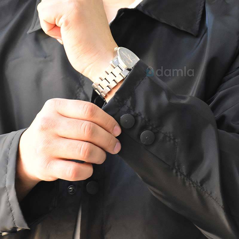 • Особенности: Мужская куртка – эта черная куртка-пуховик на пуговицах – стильное и стильное решение для прохладного сезона.