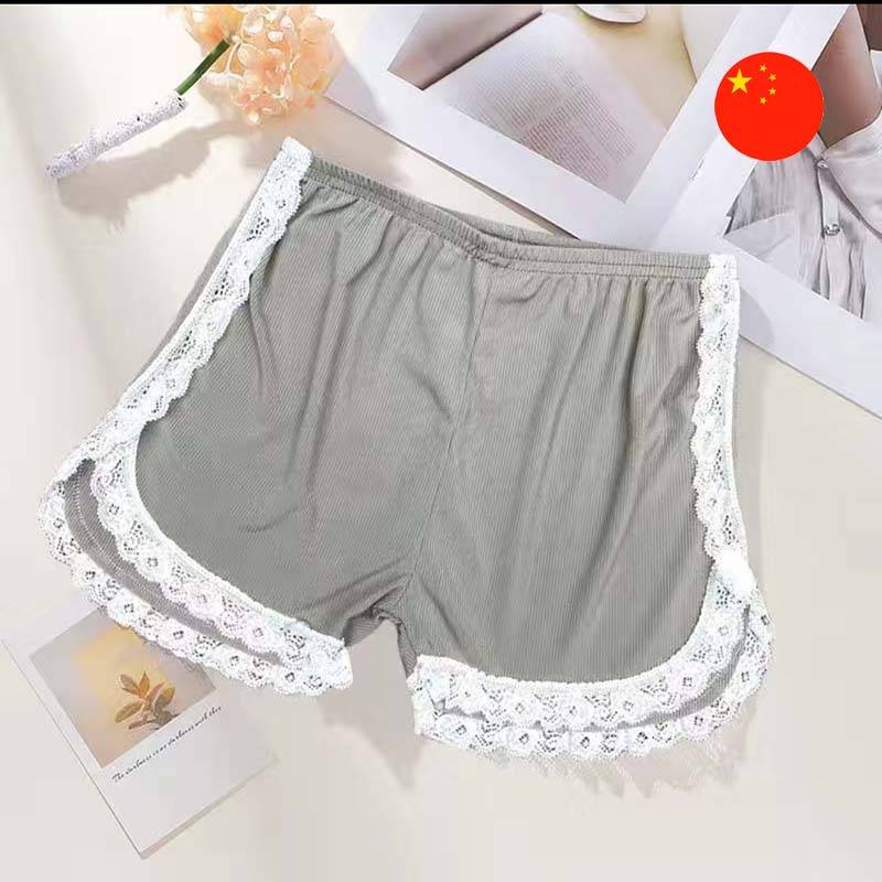 • Особенности: Легкие и удобные домашние шорты. Выполнены в сером цвете и украшены белым кружевом по краю. Идеальны для сна и отдыха.
