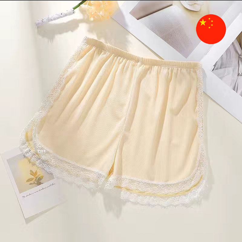 • Особенности: Легкие и удобные домашние шорты. Выполнены в бежевом цвете и украшены белым кружевом по краю. Идеальны для сна и отдыха.