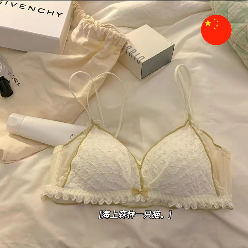 • Особенности: Кружевной бюстгальтер-бралетт. С треугольными чашками, без косточек, с бежевой отделкой и бантиком. Удобный и женственный.