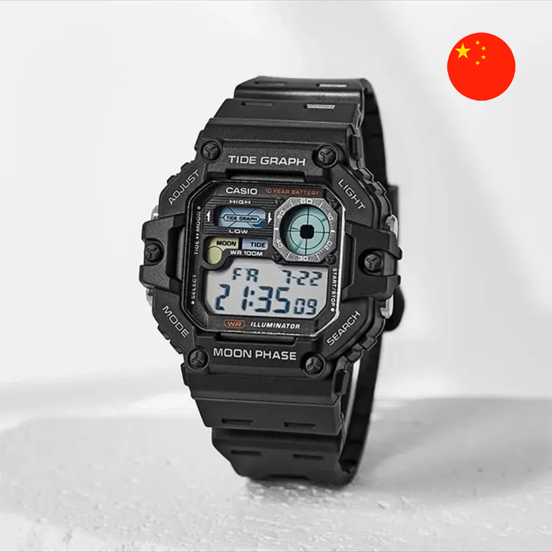 • Особенности: Мужские наручные часы Casio, модель WS-1700H-1A. Электронный дисплей, водонепроницаемый корпус. Функции: график приливов и отливов (TIDE GRAPH), фазы Луны (MOON PHASE) и подсветка. Идеальны для любителей активного отдыха и спорта.