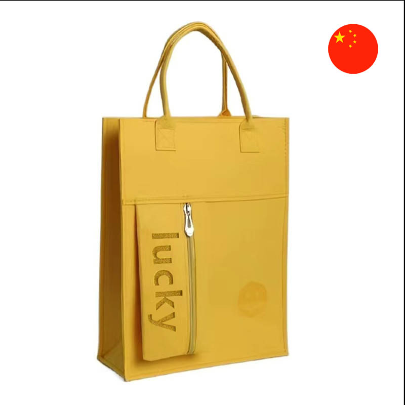 Особенности: Практичная и стильная сумка, выполненная из плотного материала. Она оснащена двумя прочными ручками, которые удобно носить как на плече, так и в руке. На лицевой стороне расположен функциональный карман на молнии, украшенный принтом "lucky" и смайликом, что добавляет аксессуару позитивного настроения.
