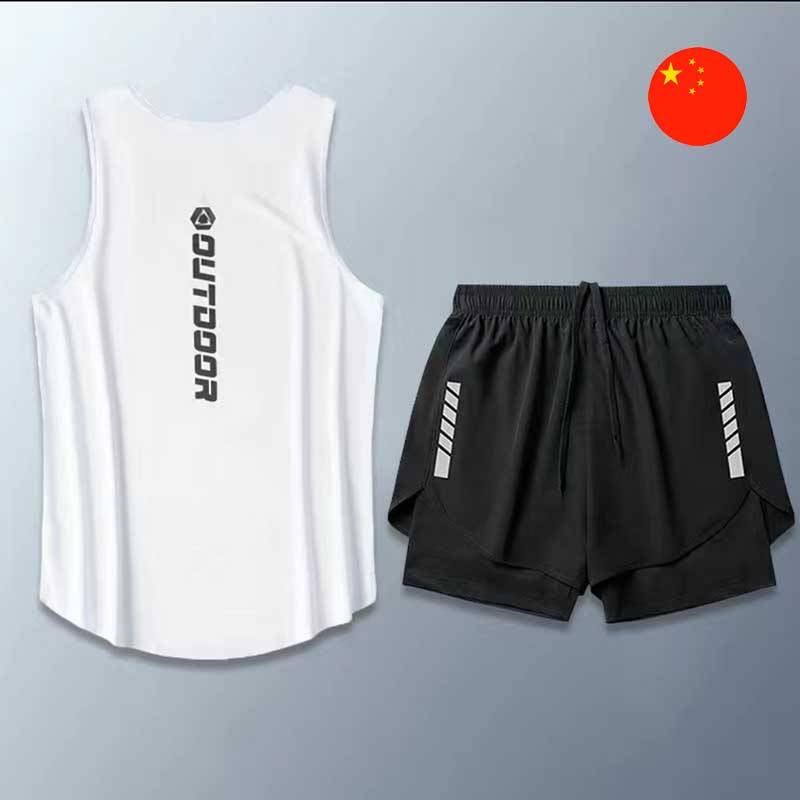 • Особенности: Мужской спортивный комплект, состоящий из майки и шорт. Майка из лёгкого материала с принтом. Шорты с двумя слоями: внутренний компрессионный и внешний свободный. Идеально подходят для занятий спортом, бега и тренировок.