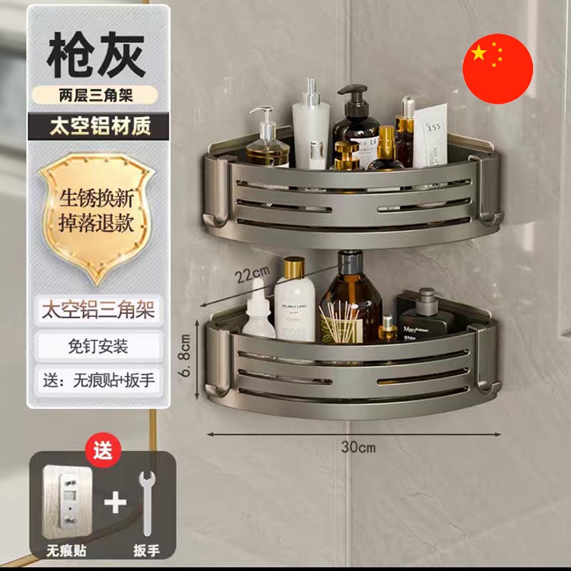 • Особенности: Практичная угловая полка для ванной, которая поможет организовать пространство. Полка имеет бортик, крючки для мочалок и вешалку для полотенца. Изготовлена из нержавеющего алюминия, легко крепится без сверления.