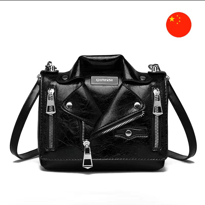 Особенности: Сумка яркий и оригинальный аксессуар для тех, кто любит выделяться. Модель имеет застежку-молнию, характерные для байкерской куртки лацканы и металлические детали.