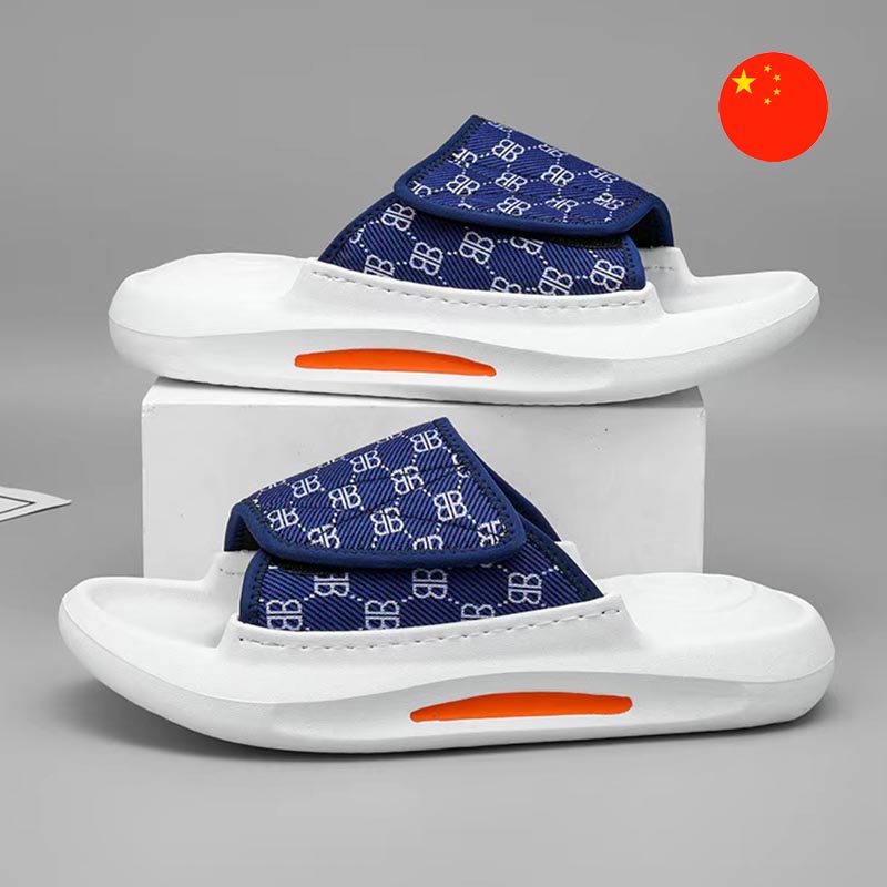 • Особенности: Стильные шлепанцы с широкой синей текстильной лямкой, украшенной логотипами. Массивная подошва вставкой делает модель современной и удобной. Идеальны для бассейна, пляжа или повседневного использования.