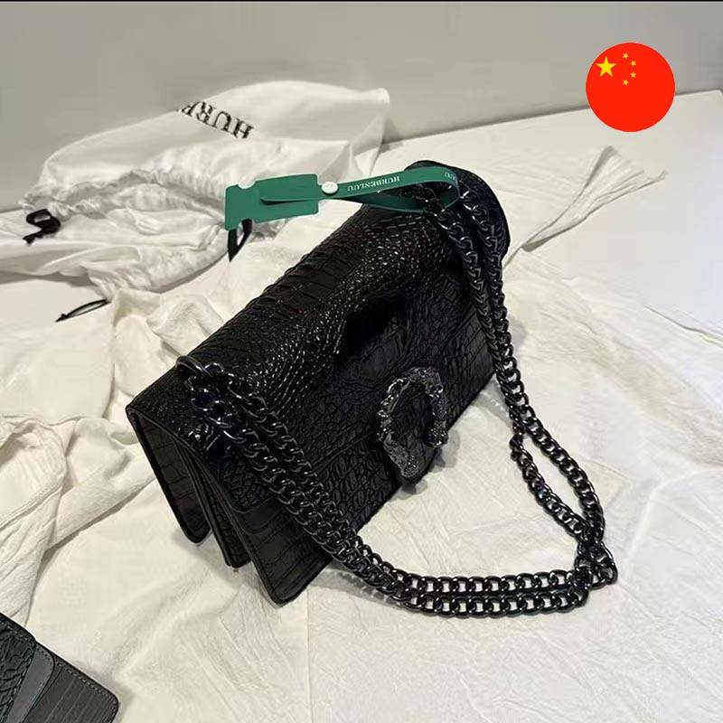 • Особенности: Элегантная женская сумкас тиснением под кожу крокодила. Модель имеет жесткую форму, украшена массивной пряжкой и цепным ремнем. Идеальный аксессуар для вечерних и праздничных образов.