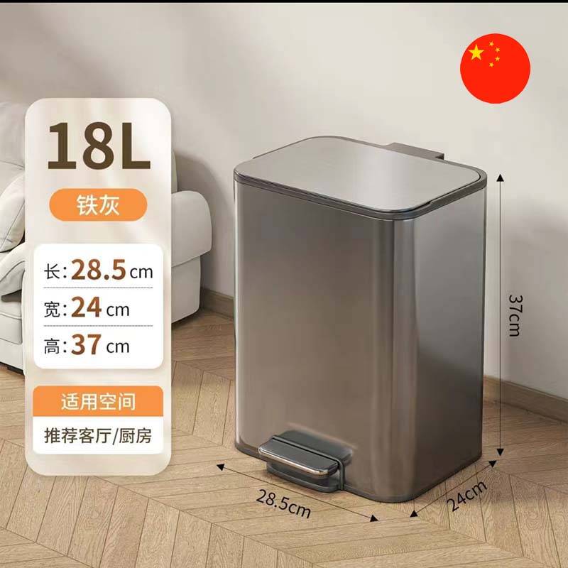 • Особенности: Мусорное ведро объёмом 18 литров с педалью. Изготовлено из нержавеющей стали в сером цвете (Iron Grey). Имеет плавный механизм закрывания крышки и открывается на 90 градусов. Идеально подходит для кухни, гостиной или офиса.