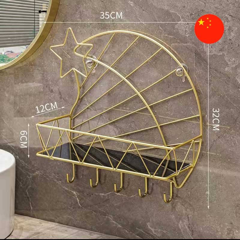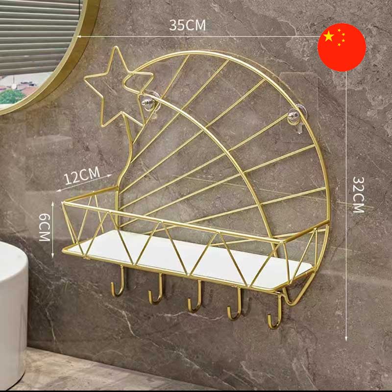 • Особенности: Настенная полка для ванную, кухню или прихожую с помощью этой стильной настенной полки. Золотистый каркас в форме полумесяца со звездой и белая полка создают элегантный и современный дизайн. Идеально подходит для хранения мелочей, косметики или ключей, а крючки позволяют удобно разместить полотенца, халаты или сумки.