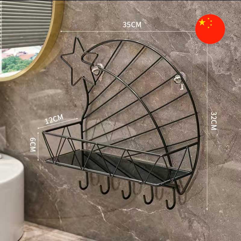 • Особенности: Настенная полка для ванную, кухню или прихожую с помощью этой стильной настенной полки. Чёрный каркас в форме полумесяца со звездой и чёрная полка создают элегантный и современный дизайн. Идеально подходит для хранения мелочей, косметики или ключей, а крючки позволяют удобно разместить полотенца, халаты или сумки.