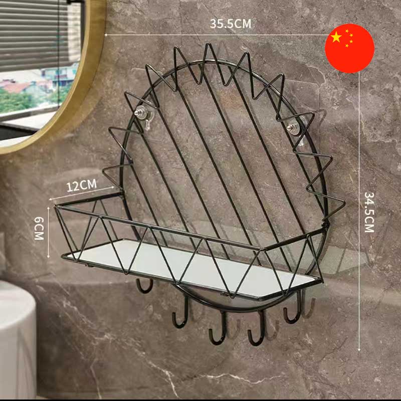 • Особенности: Настенная полка для ванную, кухню или прихожую с помощью этой стильной настенной полки. Чёрный каркас в форме солнца и белая полка создают элегантный и современный дизайн. Идеально подходит для хранения мелочей, косметики или ключей, а крючки позволяют удобно разместить полотенца, халаты или сумки.