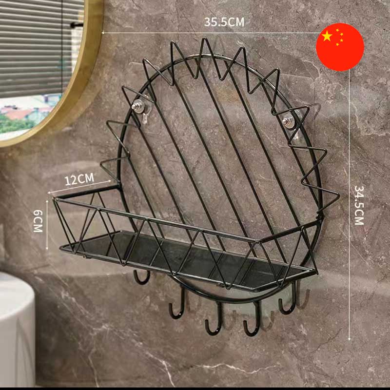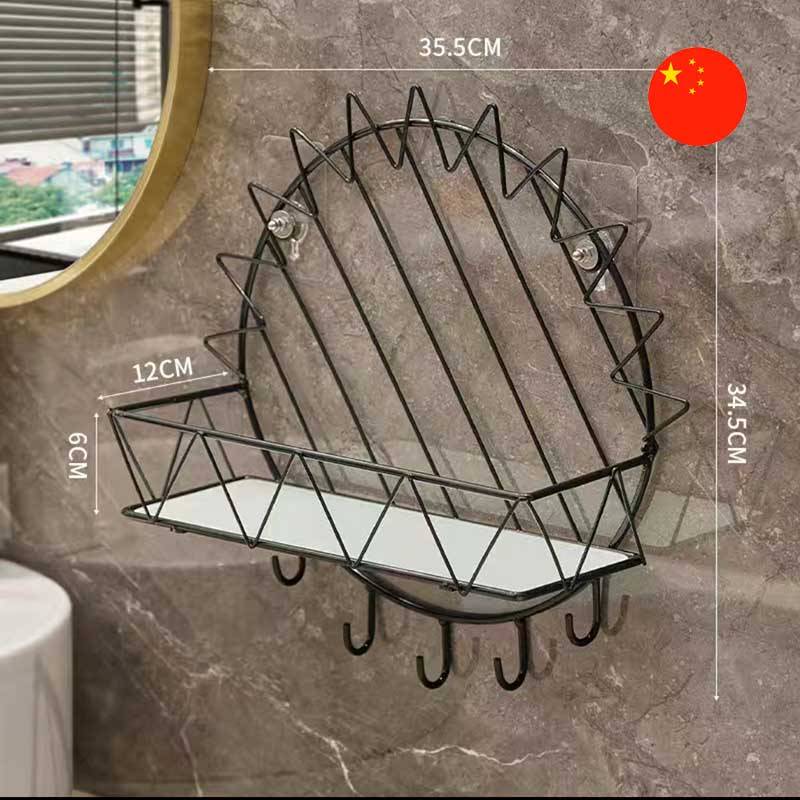 • Особенности: Настенная полка для ванную, кухню или прихожую с помощью этой стильной настенной полки. Чёрный каркас в форме солнца и чёрная полка создают элегантный и современный дизайн. Идеально подходит для хранения мелочей, косметики или ключей, а крючки позволяют удобно разместить полотенца, халаты или сумки.