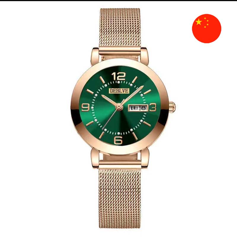 • Особенности: Изящные и элегантные часы. Корпус нежного цвета и стильный браслет с миланским плетением создают утонченный образ. Зелёный циферблат с контрастными индексами и окошком даты обеспечивает удобство и функциональность.