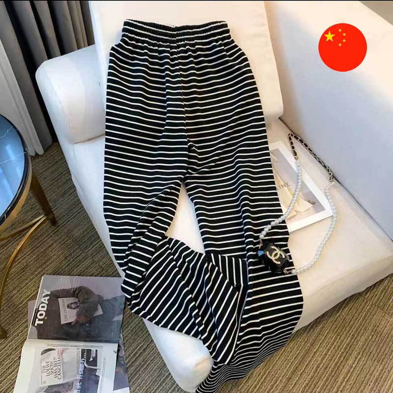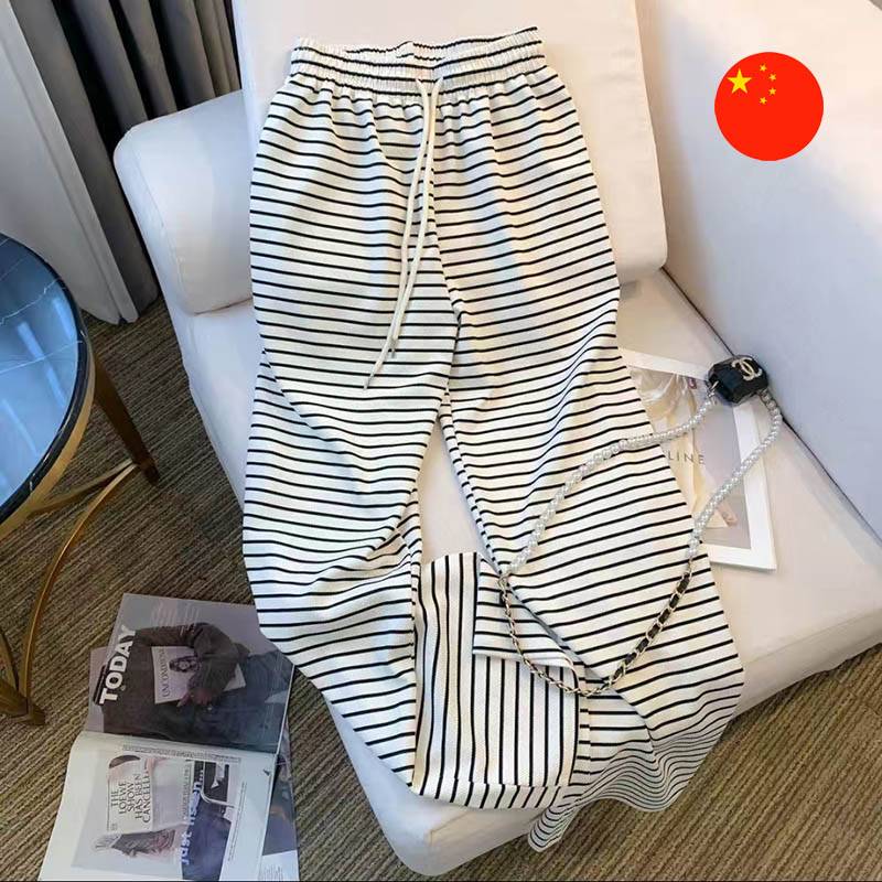• Особенности: Свободные брюки в полоску. Изготовленные из мягкого и эластичного трикотажа, они обеспечивают свободу движений и комфорт на весь день. Высокая посадка и пояс на резинке со шнурком обеспечивают идеальную посадку. Они отлично подойдут для дома, прогулок или поездок.