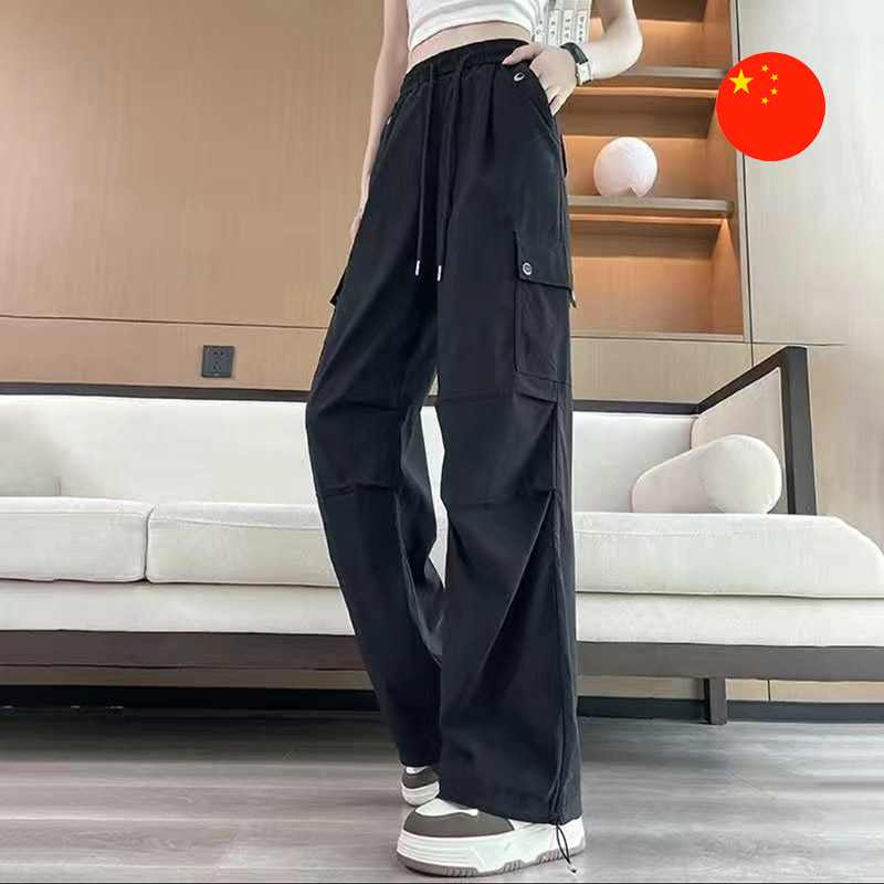 Особенности: Женские брюки. Свободный крой и практичные карманы на штанинах сочетают в себе комфорт и уличный стиль. Эластичный пояс на шнурке обеспечивает идеальную посадку.
