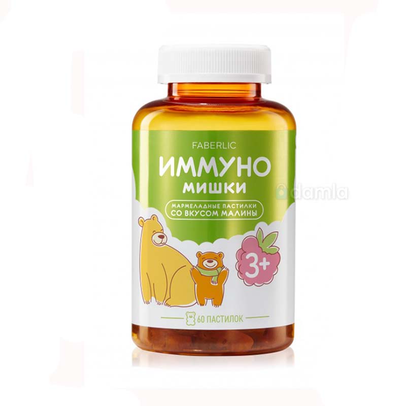• Характеристики: Faberlic "Иммуно Мишки" - это вкусные и полезные мармеладные пастилки для детей от 3 лет. Содержат комплекс витаминов и минералов, необходимых для укрепления иммунитета. С натуральным малиновым соком.