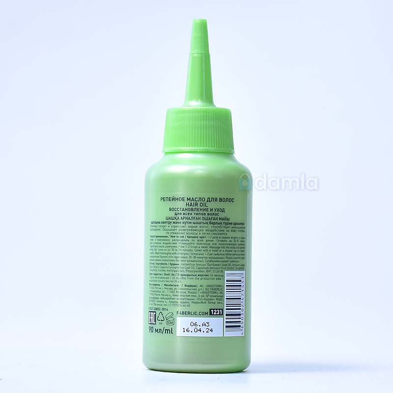 • Особенности: Восстанавливает поврежденные пряди волос, питает их и улучшает их общее состояние. Подходит для любого типа волос и улучшает уход за ними. На 99% его состав состоит из ингредиентов натурального происхождения. Репейное масло укрепляет корни волос, предотвращает выпадение волос и устраняет перхоть. Красный перец (КРАСНЫЙ ПЕРЕЦ) усиливает кровообращение в коже головы, улучшает питание волосяных луковиц и стимулирует рост волос. Может вызывать легкое жжение. Для тех, у кого поврежденные и ослабленные волосы.