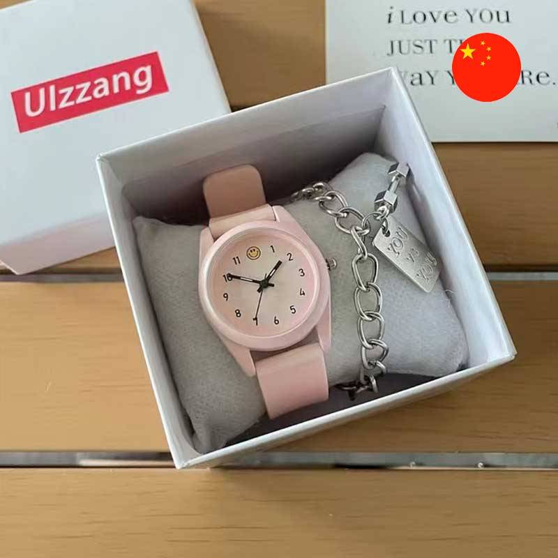 Особенности: Очаровательный набор состоит из наручных часов в нежном цвете с циферблатом-смайликом и металлического браслета с декоративной подвеской. Все это упаковано в элегантную подарочную коробку, что делает набор готовым для вручения.