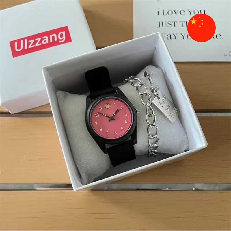 • Особенности: Очаровательный набор состоит из наручных часов в нежном цвете с циферблатом-смайликом и металлического браслета с декоративной подвеской. Все это упаковано в элегантную подарочную коробку, что делает набор готовым для вручения.