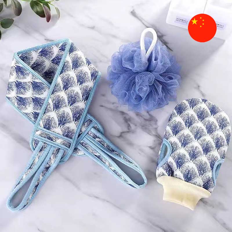 • Особенности: Набор банных принадлежностей идеальное решение для тщательного и приятного мытья. В комплект входят Ванная мочалка-варежка, Ванная мочалка-полотенце для спины и шарик для создания пены. Изделия выполнены в нежном цвете с оригинальным принтом, что делает их отличным дополнением к вашей ванной комнате.
