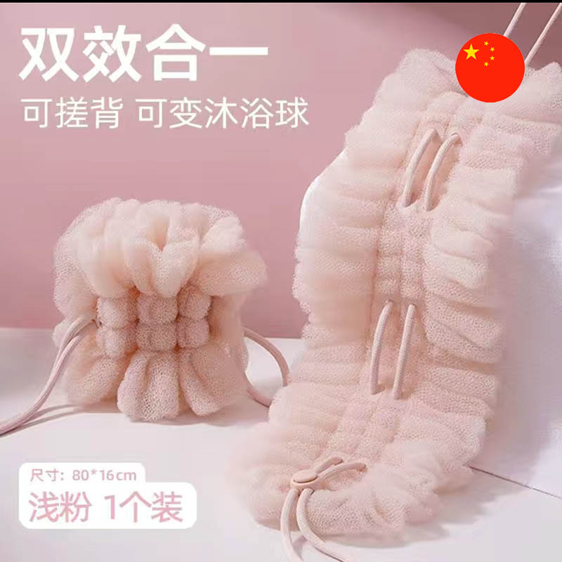 Характеристики: Это мочалка с двойной функцией (массаж спины и шарик для ванны). Главная особенность этого изделия — его двойное применение: его можно удлинить, чтобы вытирать спину, или укоротить и использовать как губку.